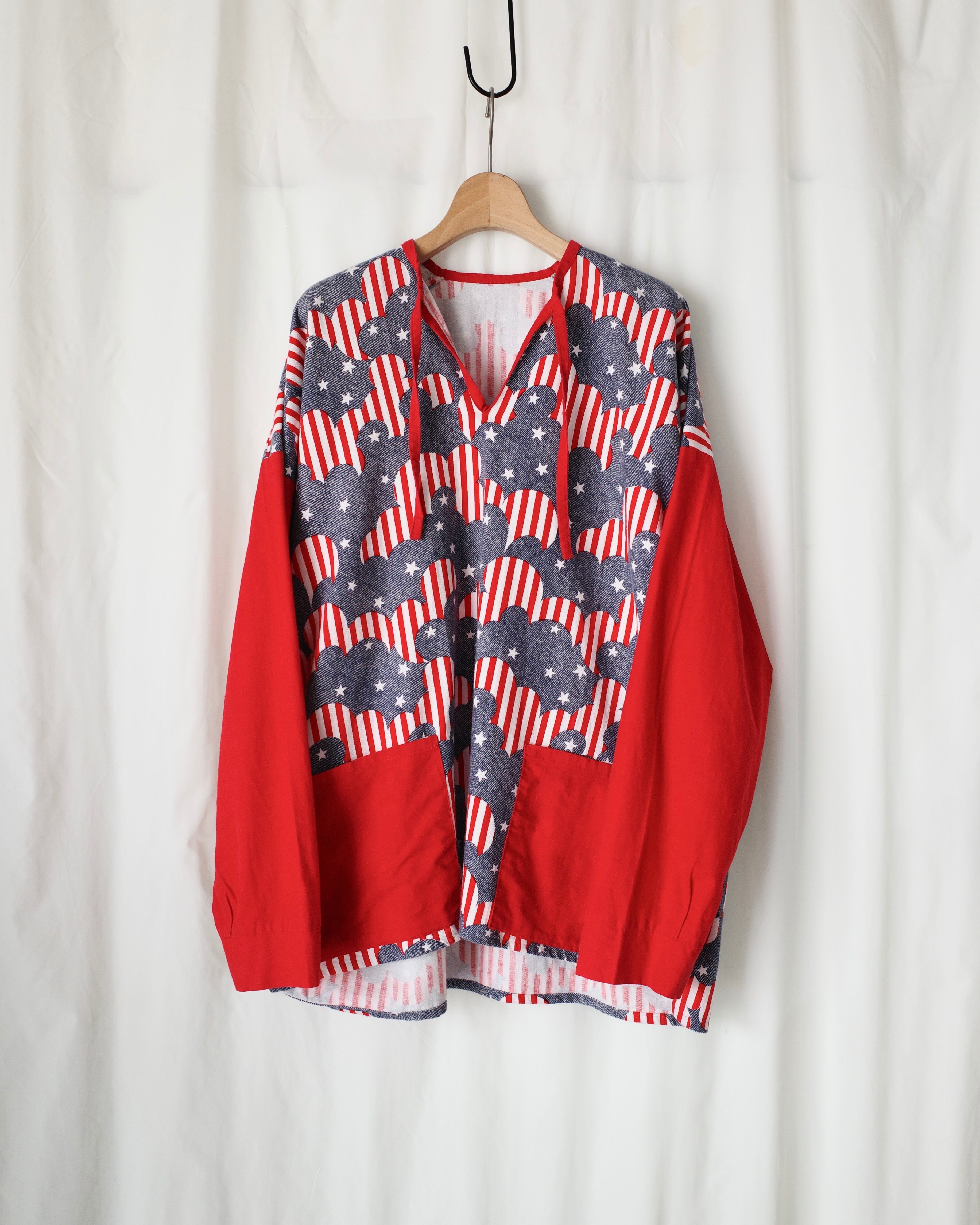 星条旗モチーフの総柄生地を用いたプルオーバーシャツ