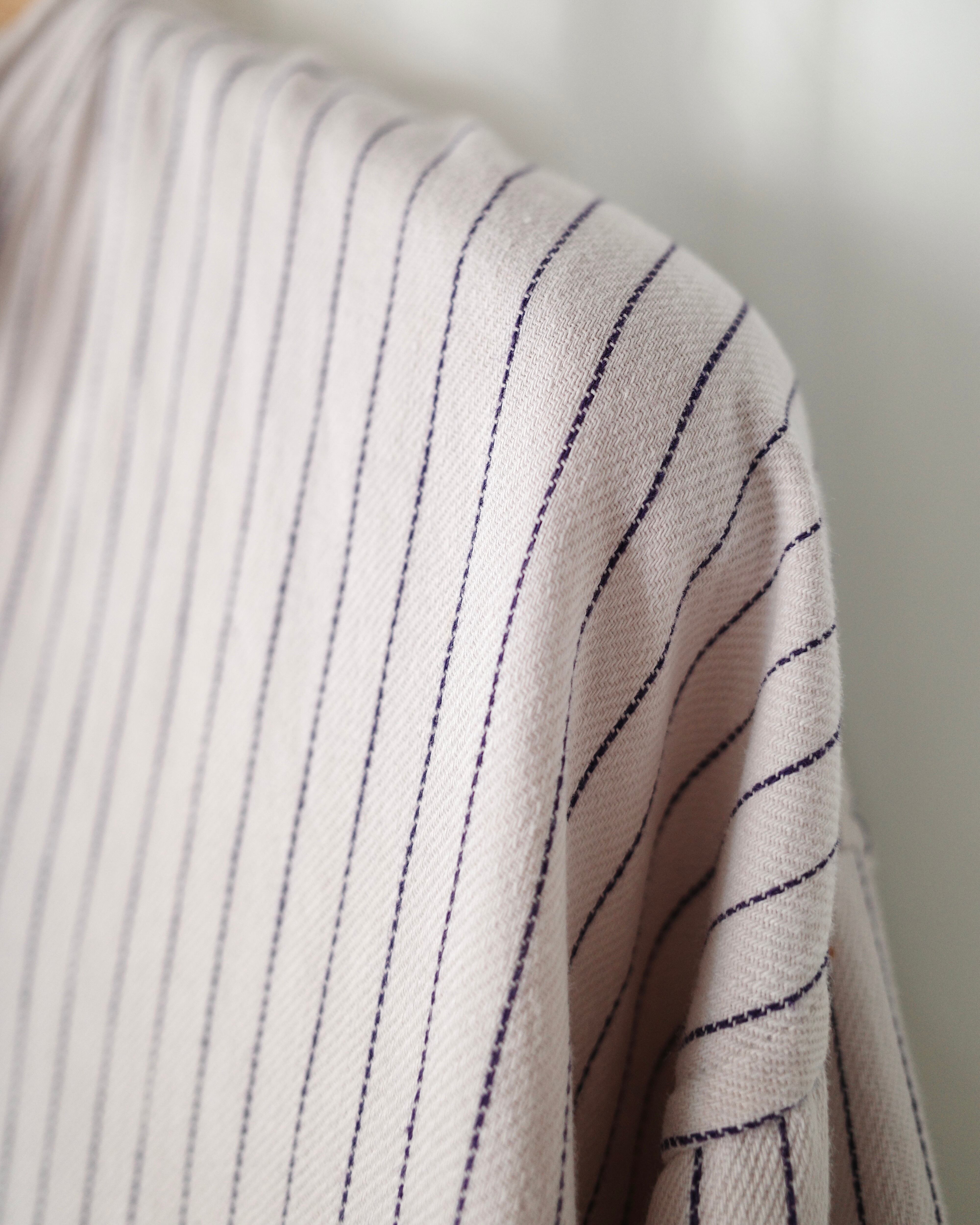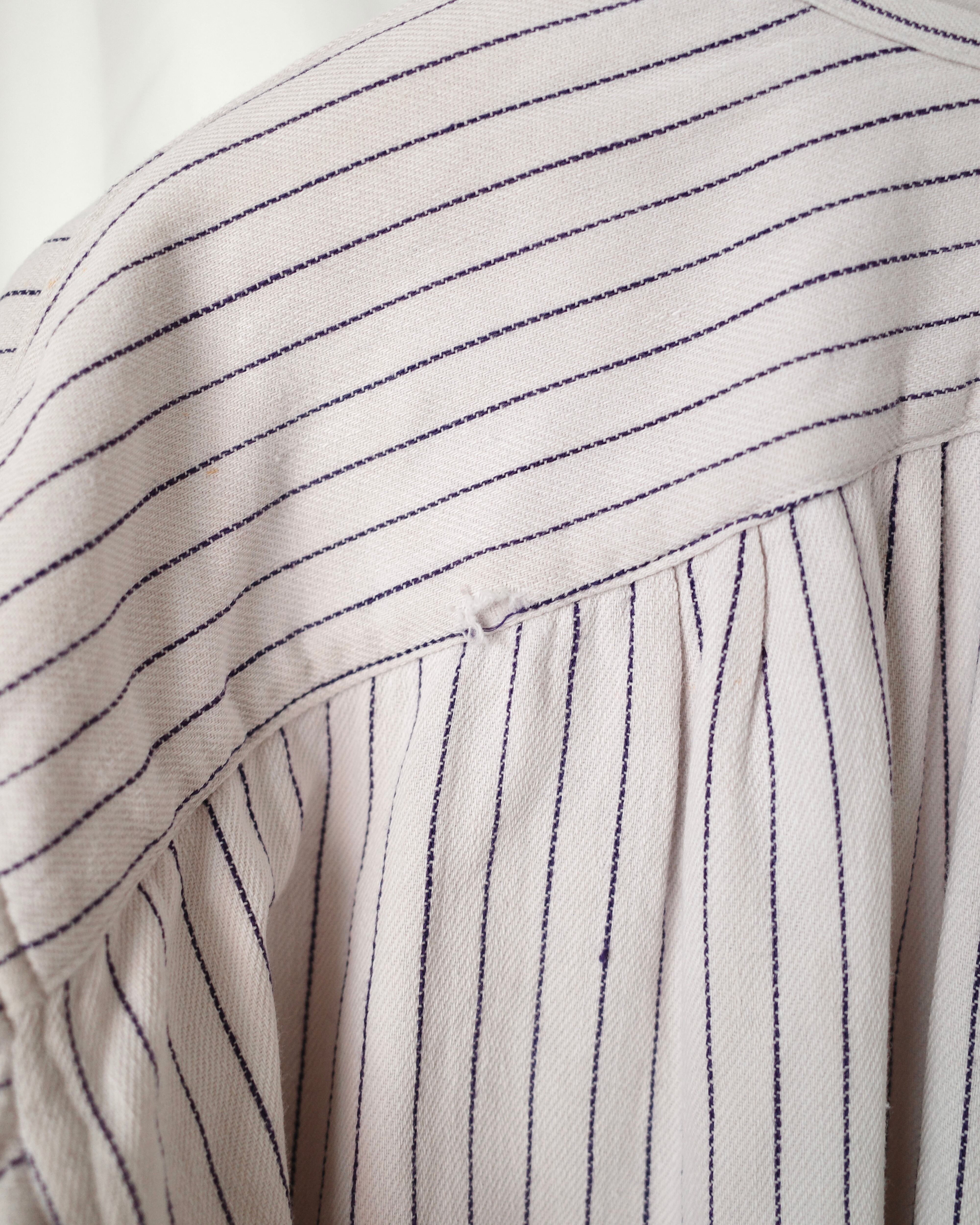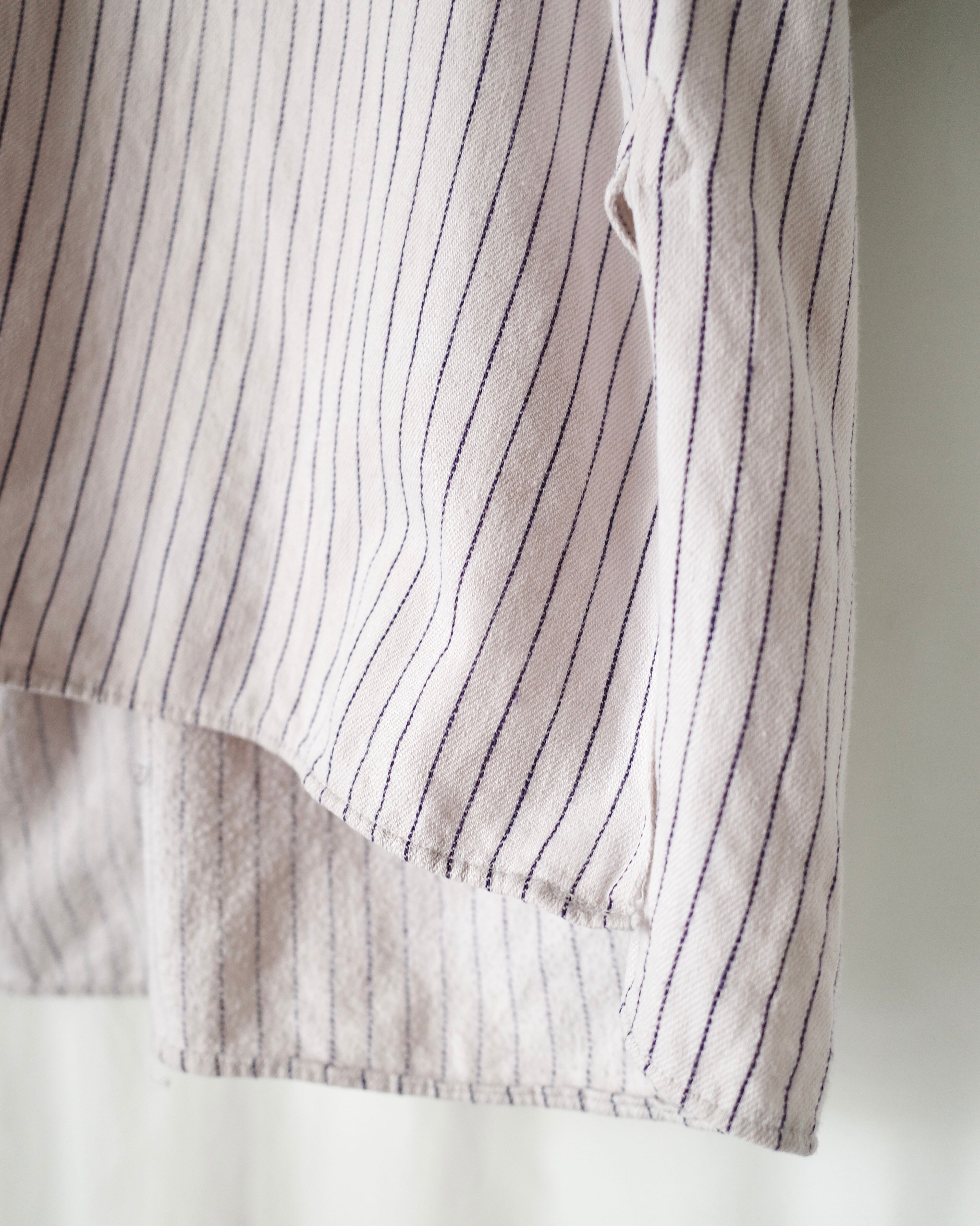 白黒ストライプのグランパシャツ