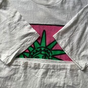 1980年代を代表するアーティスト、キースヘリングの作品である"STATUE OF LIBERTY"がプリントされた一品。コミカルでポップさ溢れる特徴が存分に現れる一枚!ぜひです。