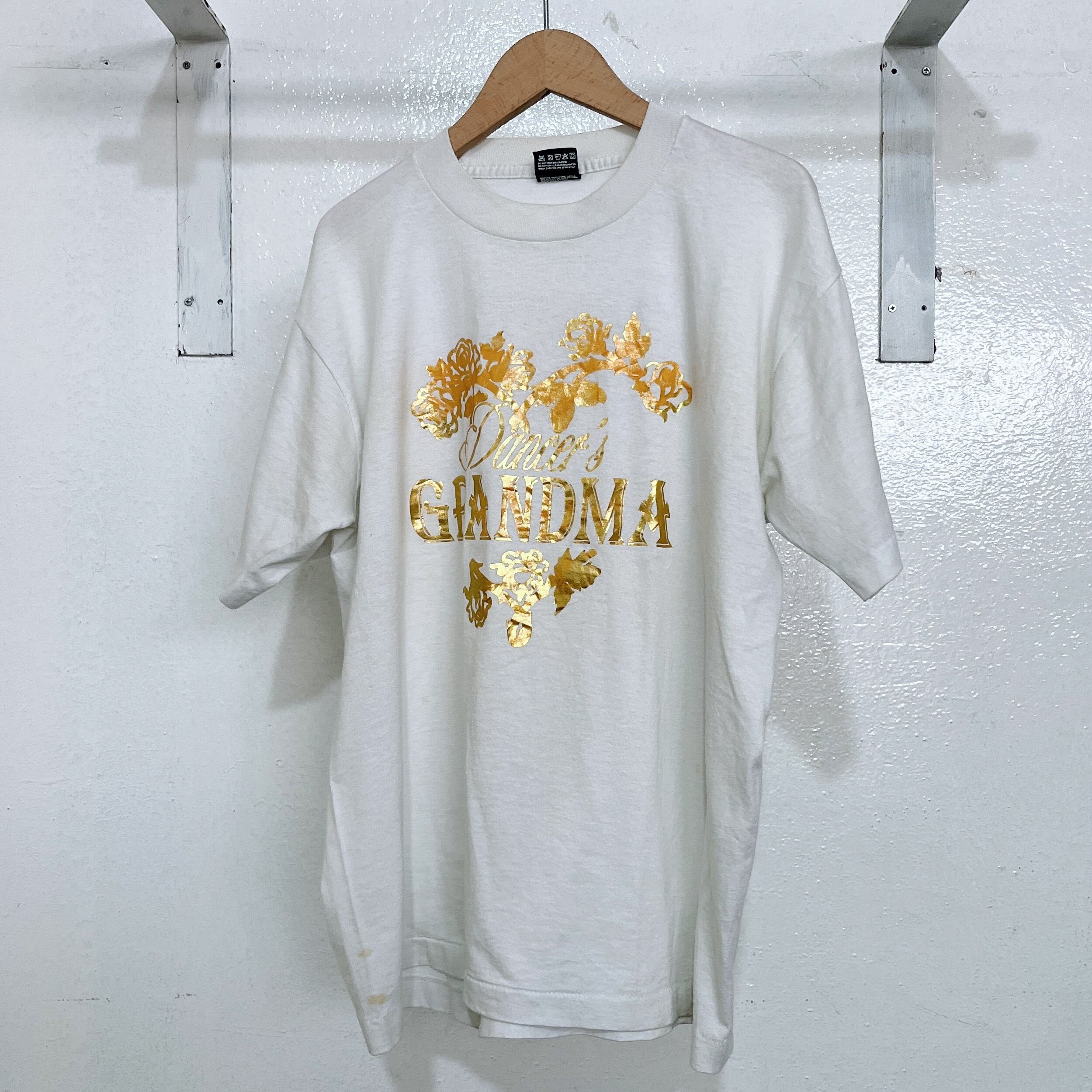 Dancer's Gramndmaと書かれたホイルプリントのTシャツ