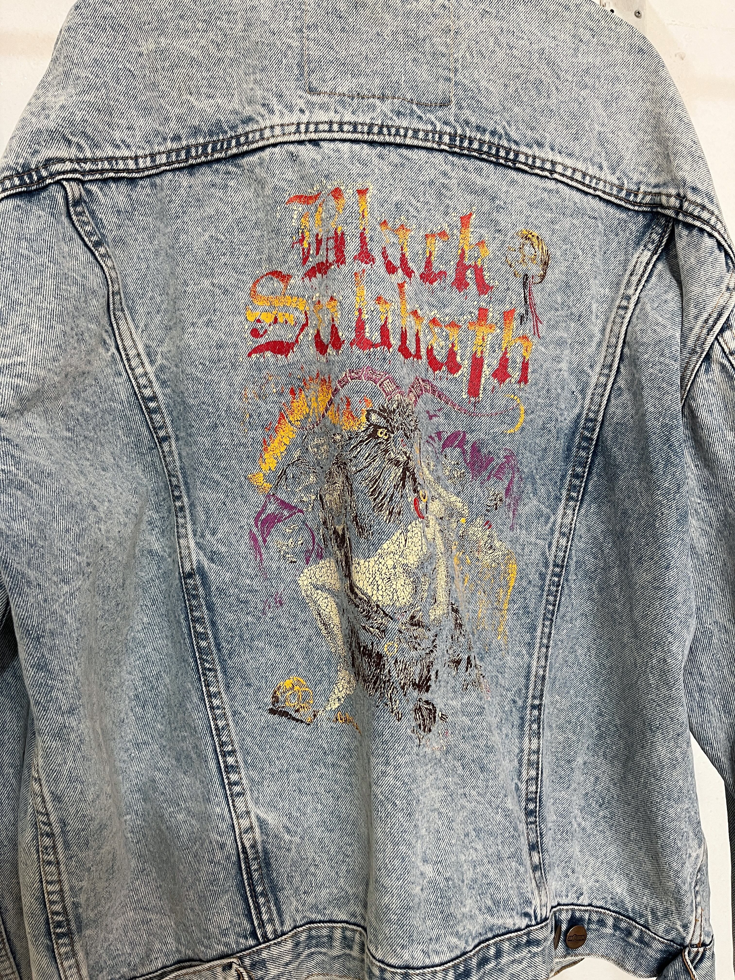 背中にはロックバンド Black Sabbath のプリントが施され、存在感のある1着に仕上がっています。