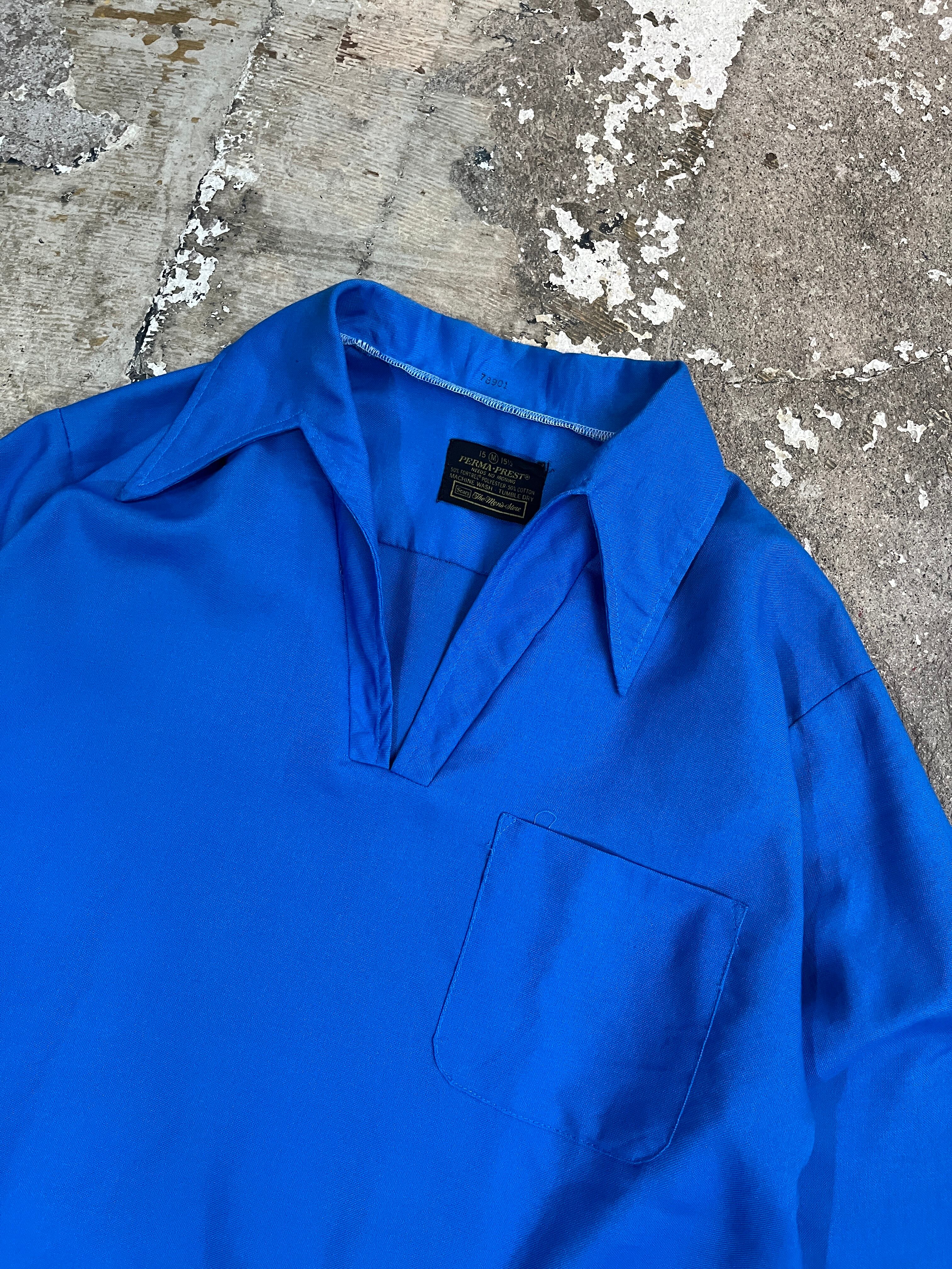 こんな単色真っ青なシャツ以外に見かけないかも?とか思ったり、